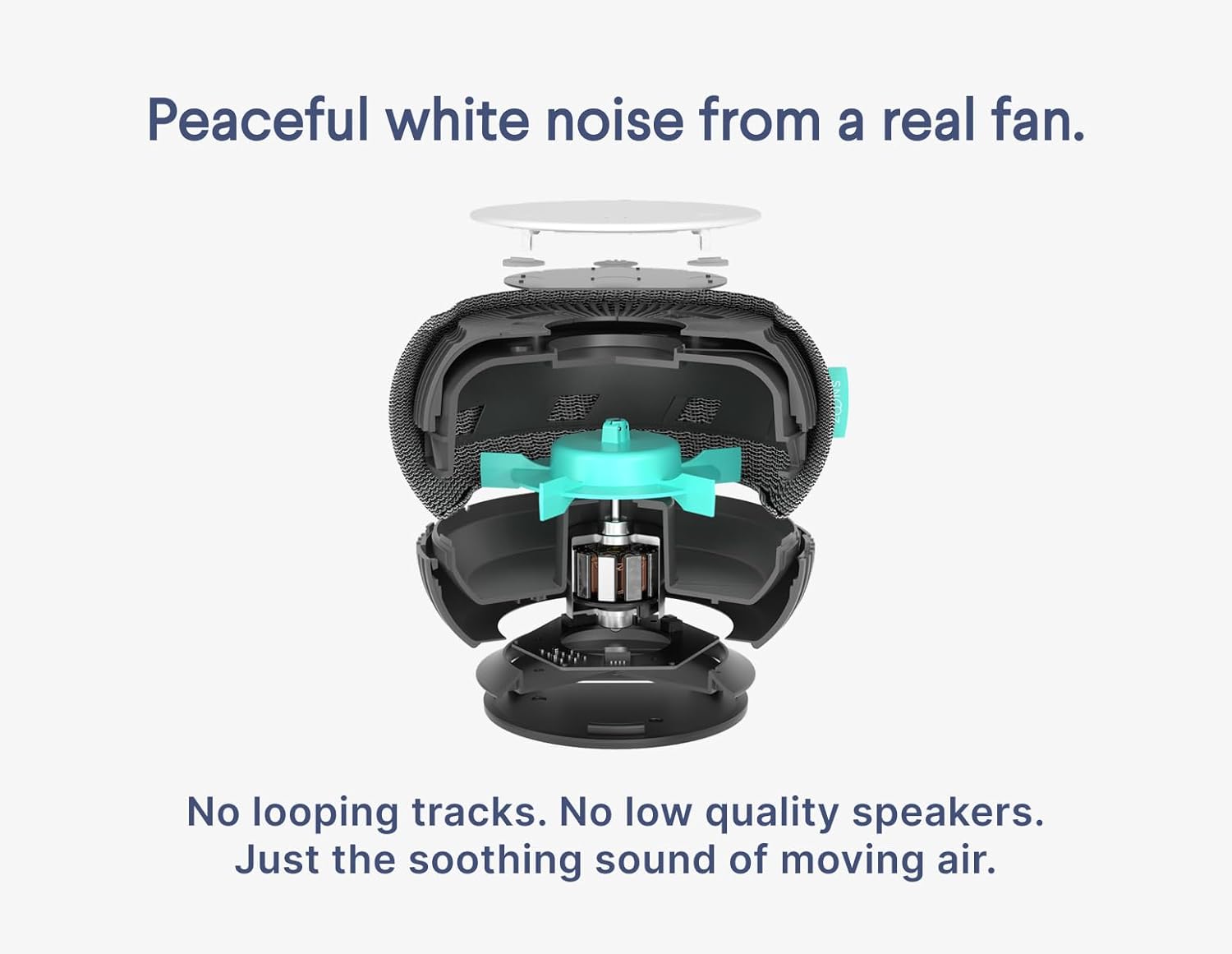 A white noise machine (also known as a sleep machine) produces peaceful, soothing background noise that helps mask disturbances in your sleep environment and serves as an environmental cue for your brain that it is time to sleep. The SNOOZ White Noise Machine contains a mechanical fan that spins to generate calming white noise.